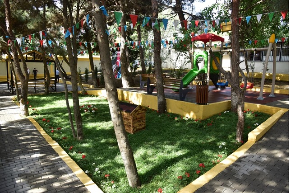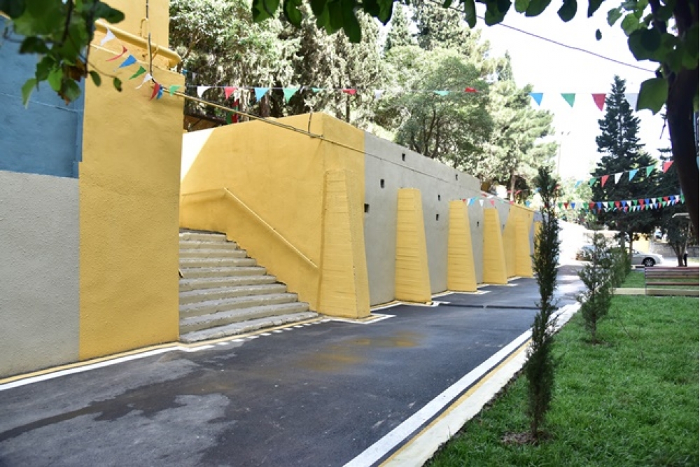 Görülmüş işlər çərçivəsində binanın həyətinə 1500 kv.m-ə yaxın asfalt örtüyü, 400 kv.m-dən artıq qazon, 300 kv.m tamet daşı vurulub, 150 p.m-dən artıq yeni bardürlər və kiçik tullantıların atılması üçün yeni zibil qutuları qoyulub, hündürlüyü 8 metr olan 100 p.m-dən artıq istinad divarı bərpa olunaraq rənglənib.