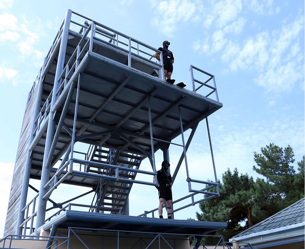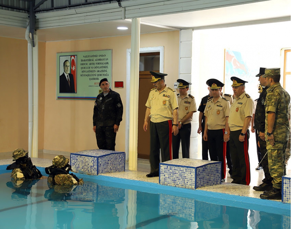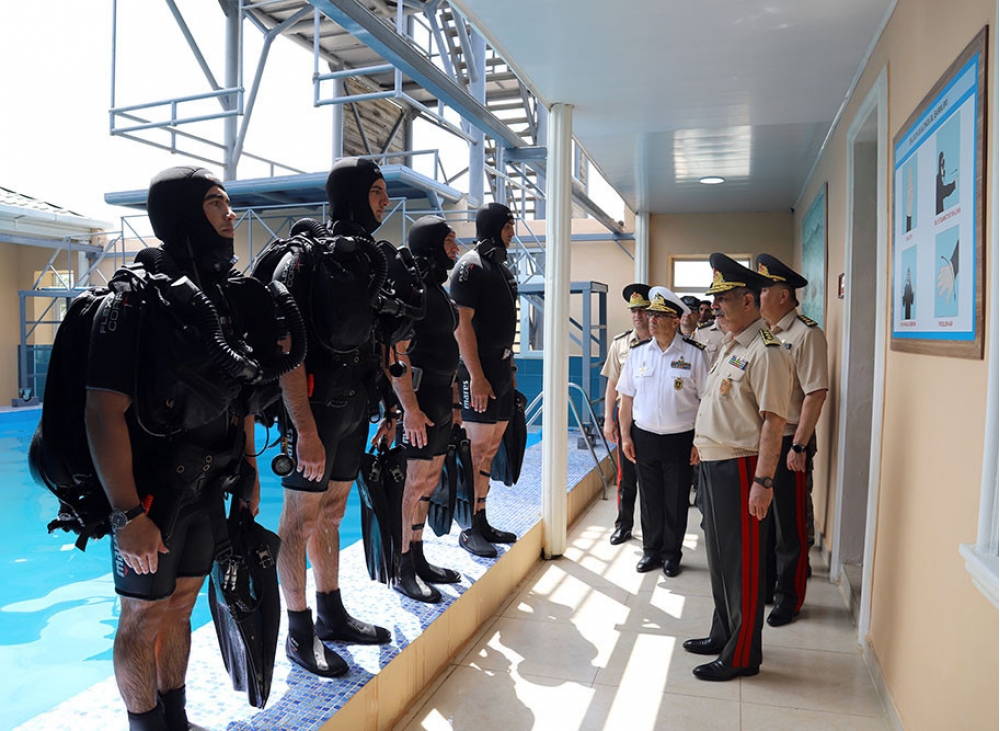 Sonda hərbi hissənin ərazisindəki təlim poliqonunda sualtı hücum və sualtı müdafiə bölmələrinin dalğıclarının nümunəvi çıxışları nümayiş etdirilib.