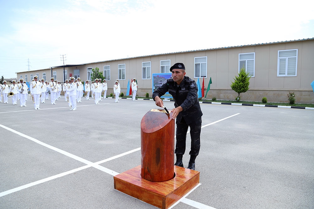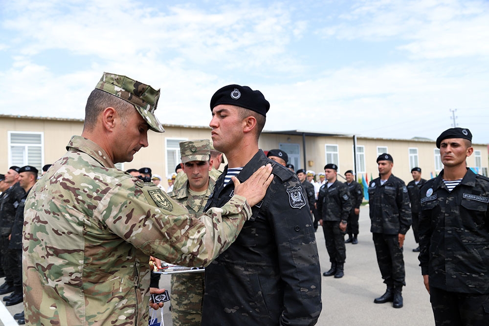 Sonra kurs birincisi tərəfindən rəmzi yaş kötüyünə emblem vurulub və məzunlara sertifikatlar təqdim edilib. Kursda fərqlənən hərbi qulluqçular və təlimatçılar fəxri fərman və qiymətli hədiyyələrlə mükafatlandırılıb.