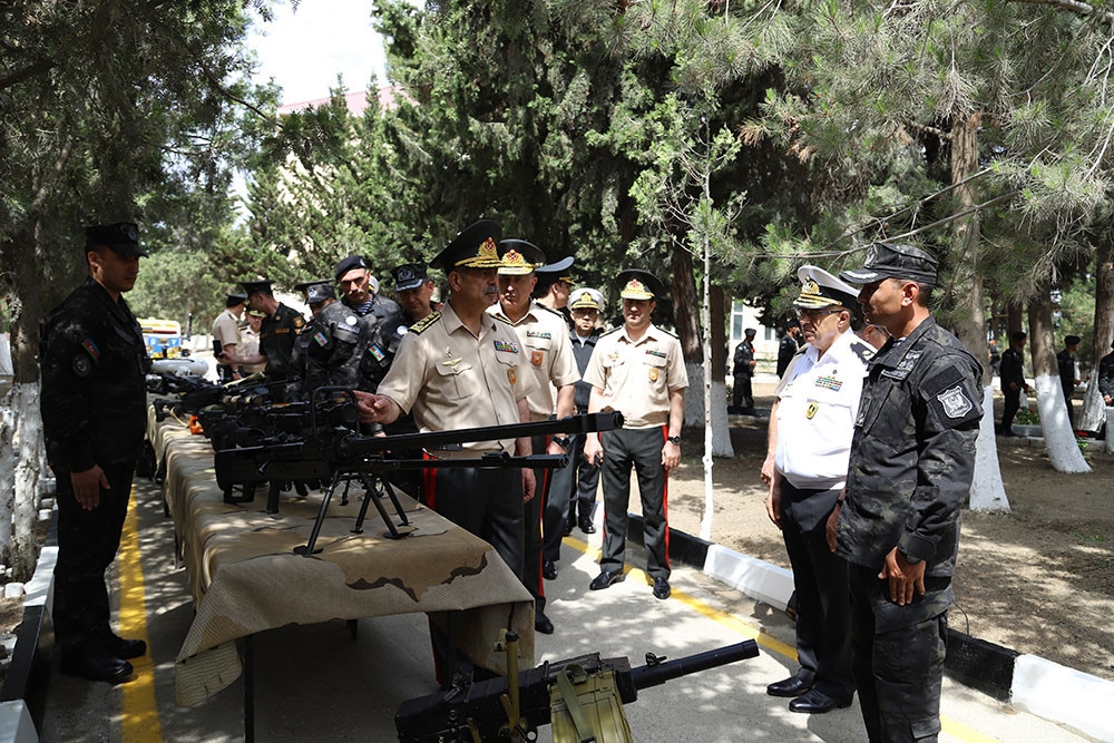 Müdafiə naziri dəniz piyadalarının istifadəsində olan silah və texniki vasitələrdən ibarət sərgiyə baxış keçirib.