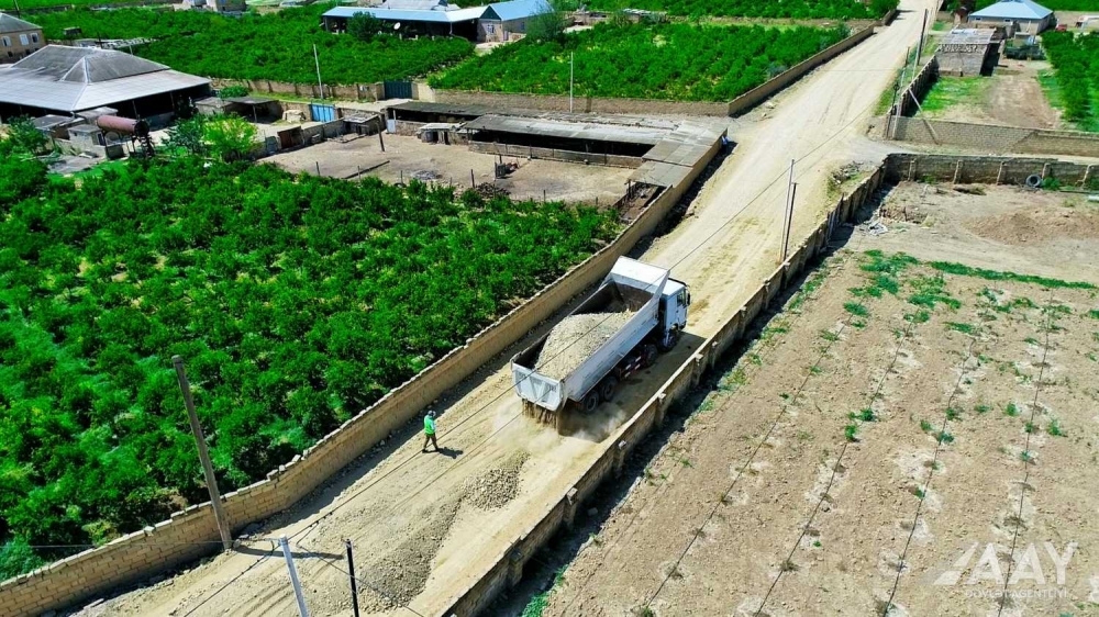 Layihəyə uyğun olaraq hazırda yolun qabarmış və çökmüş hissələrinin qazılaraq çıxarılması, qazılmış hissələrinin doldurulması, yolun torpaq yatağının qaldırılması və genişləndirilməsi, yararlı qruntun yayılması və lay-lay kipləşdirilməsi, müəyyən hissələrdə yolun genişləndirilməsi, optimal-qırmadaş qarışığı ilə əsasın alt layının, qum-çınqıl qarışığından isə əsasın üst layının tikintisi işləri görülür. Artıq yolun 20 km hissəsində sadalanan işlər, yolun 7 km-lik hissəsində isə yol əsasının tikintisi yekunlaşıb.