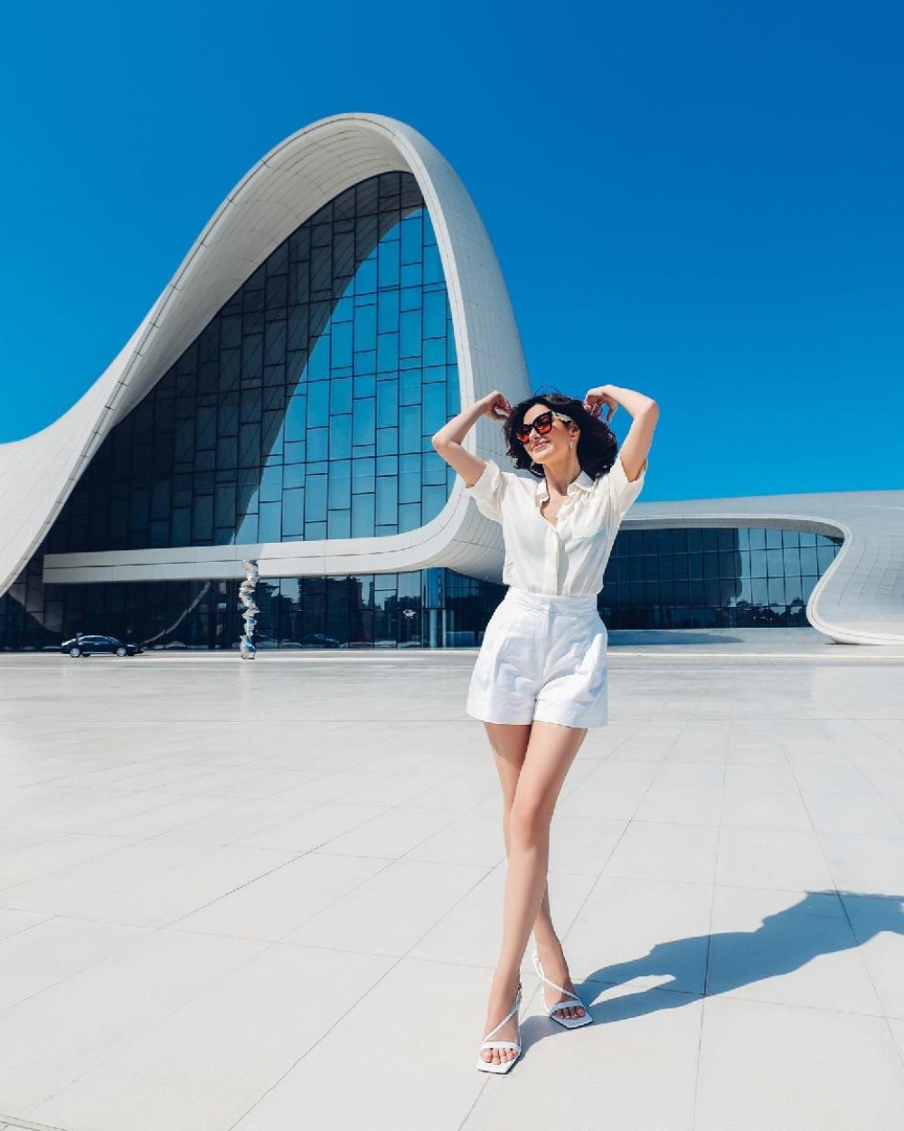 Heydər Əliyev Mərkəzi, Dənizkənarı Bulvar və İçərişəhərdə olan aktrisa şəkillərini instaqram hesabında yayımlayıb. Nəsrin paylaşımına "Şəhərlərin gözəli, gözəllərin şəhəri - Bakı" qısa şərhini yazıb.