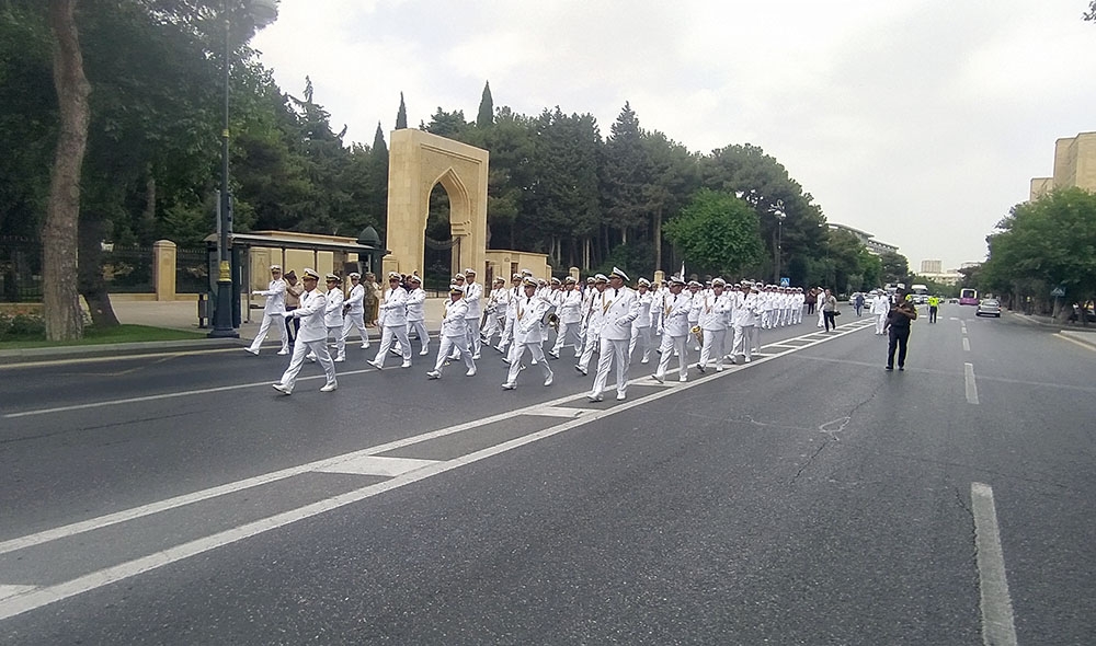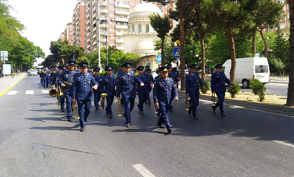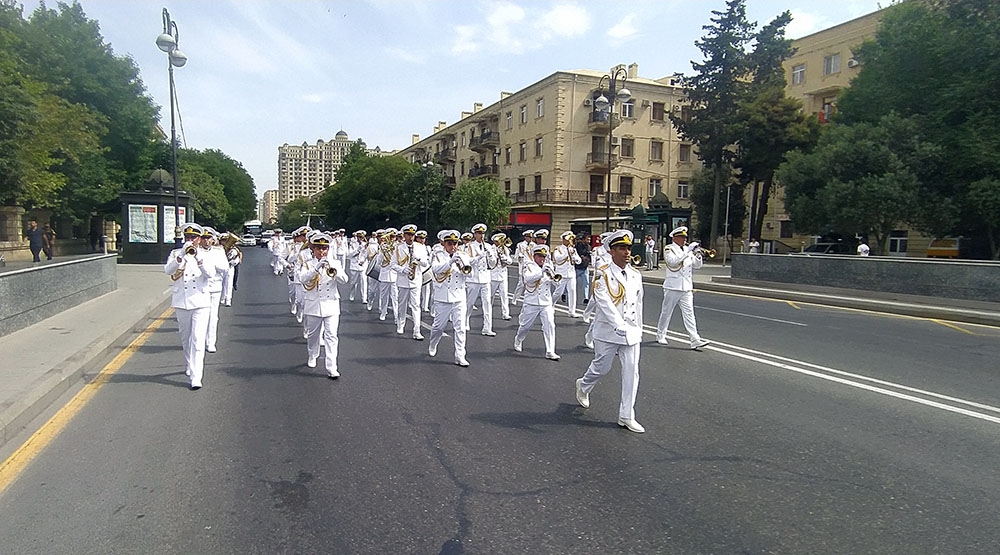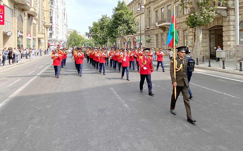 Qeyd edək ki, Heydər Əliyev parkı (Heydər Əliyev sarayının qarşısı), AzNeft dairəsindəki bayraq meydanı, Muzey Mərkəzi (bulvar fontanının qarşısı), Zabitlər parkı, Koroğlu parkı və Fəvvarələr meydanında hərbi orkestrlərin nümunəvi çıxışları bu gün saat 21:00-dək davam edəcək.