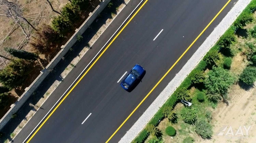 Sonuncu mərhələdə yolboyu zəruri yerlərdə yol nişanları quraşdırılıb, yolun üfüqi nişanlanma xətləri çəkilib.