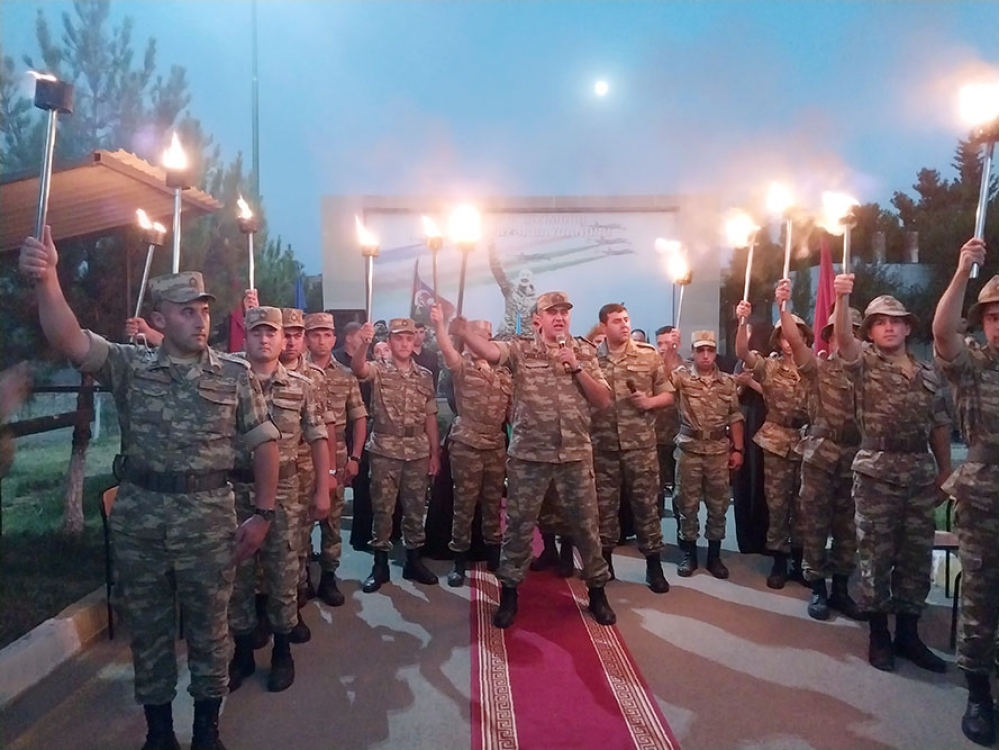 Tədbirin sonunda Tovuz döyüşləri zamanı şəhid olan 12 nəfər hərbi qulluqçunun xatirəsinə on iki məşəl alovlandırılıb və əsgərlər bu müqəddəs odu sönməyə qoymayacaqlarına, od-ocağımızı, qanla vətənləşən tarixi torpaqlarımızı bundan sonra da canları və qanları bahasına qoruyacaqlarına, Müzəffər Ali Baş Komandanın hər bir əmrinə hər an hazır olacaqlarına and içiblər.