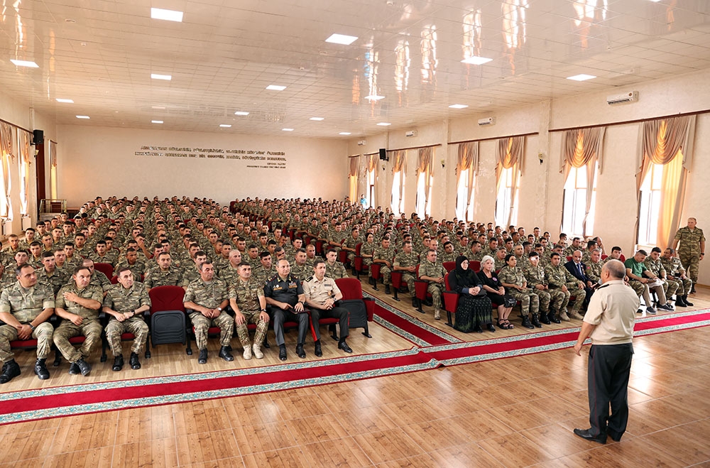 Sonra general-mayor E.Xəlilov müdafiə naziri general-polkovnik Zakir Həsənovun şəxsi heyətə ünvanlanan təbrik məktubunu tədbir iştirakçılarının nəzərinə çatdırıb.