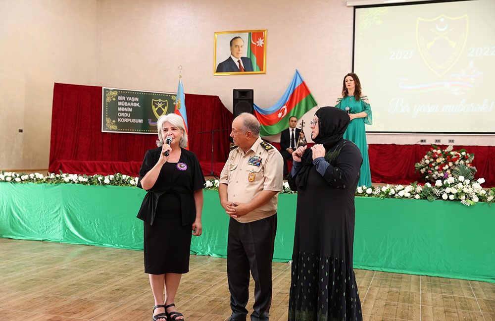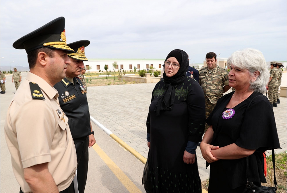General-mayor E.Xəlilov tədbirdə iştirak edən şəhid analarına müraciətlə bildirib ki, sizin kədəriniz hər birimizin kədəridir. Şəhidlərimizin müqəddəs ruhları qarşısında bir daha ehtiramla baş əyir, Vətənə belə igid oğullar bəxş etdiyinizə görə sizlərə minnətdarlığımızı bildirərək əllərinizdən öpürük. Təsəllimiz ondadır ki, şəhidlərimizin intiqamını döyüş meydanlarında vuruşaraq aldıq, unudulmaz şəhidlərimizin qanı yerdə qalmadı. Bu tədbirdə iştirak edən hər bir əsgər də, hər bir zabit də sizin övladlarınızdır. Qəhrəman oğullarımızın davamçıları olan bu gənclər Müzəffər Ali Baş Komandanın hər bir əmrinə hər an hazırdırlar. Lazım gələcəksə, onlar yenə də döyüş meydanlarına atılaraq şəhidlərimizin ruhlarını bir daha şad edəcəklər.