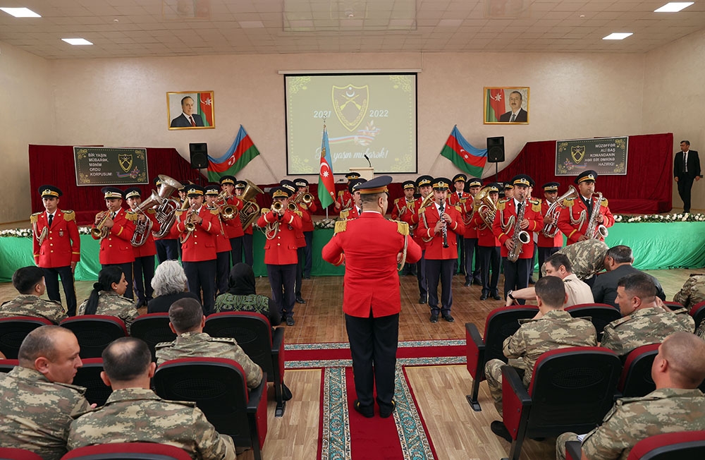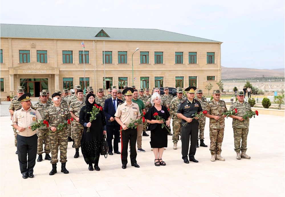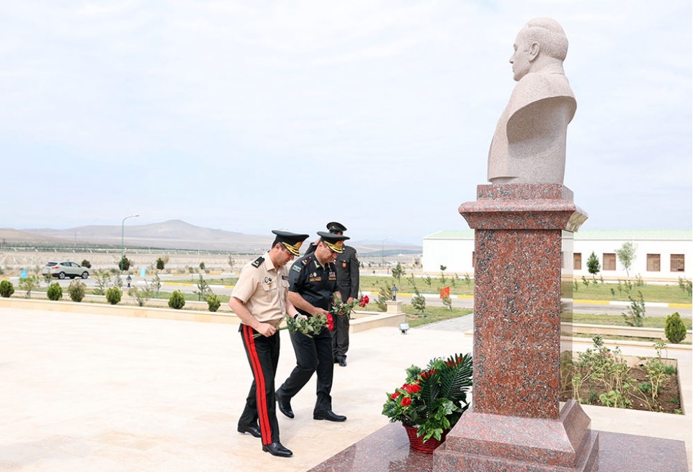 Əvvəlcə Müdafiə Nazirliyinin və Ordu birliyinin rəsmiləri, Vətən müharibəsi iştirakçıları, şəhid ailələrinin üzvləri, xidmətlə fərqlənən hərbi qulluqçulardan bir qrupu qərargah binasının qarşısında xalqımızın ümummilli lideri Heydər Əliyevin xatirəsinə ucaldılan abidəni ziyarət edərək qarşısına qızılgül çələngi qoyub, güllər düzüb, ehtiramlarını bildiriblər.