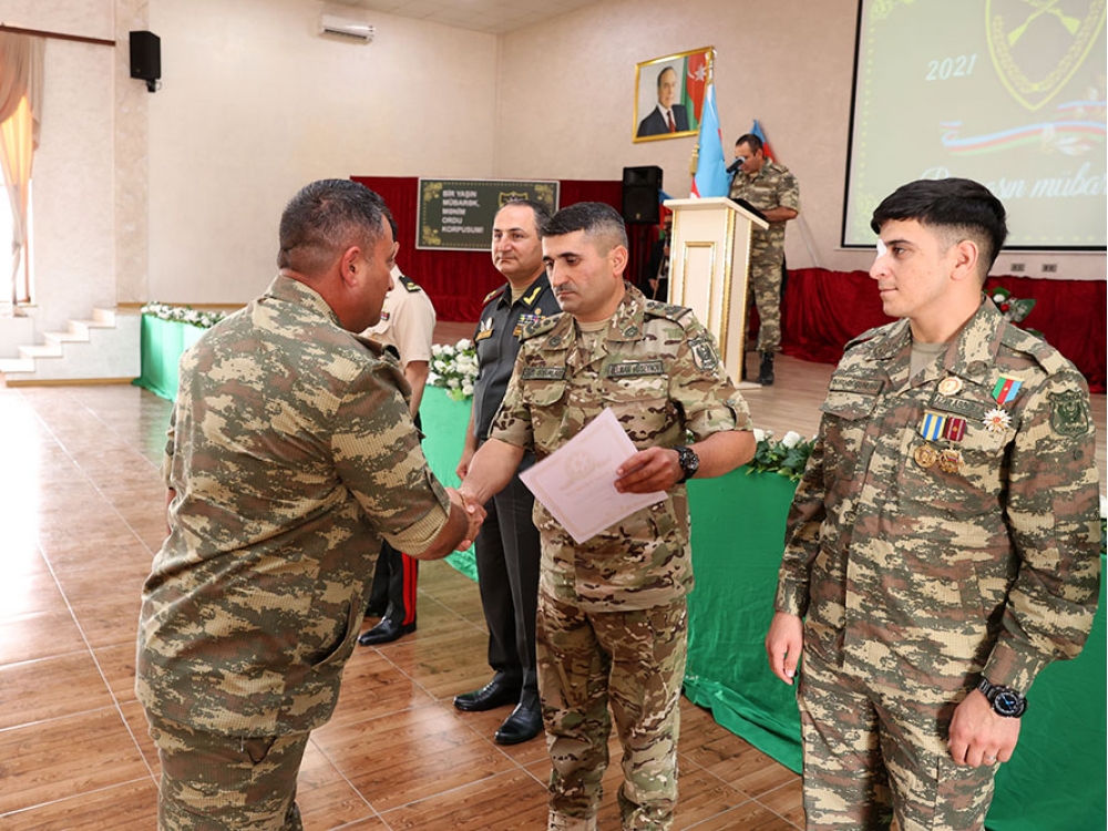 Xidmətdə fərqlənən bir qrup hərbi qulluqçunun təltif edilməsi haqqında Ordu birliyi komandirinin əmri oxunub və mükafatlar təqdim edilib.