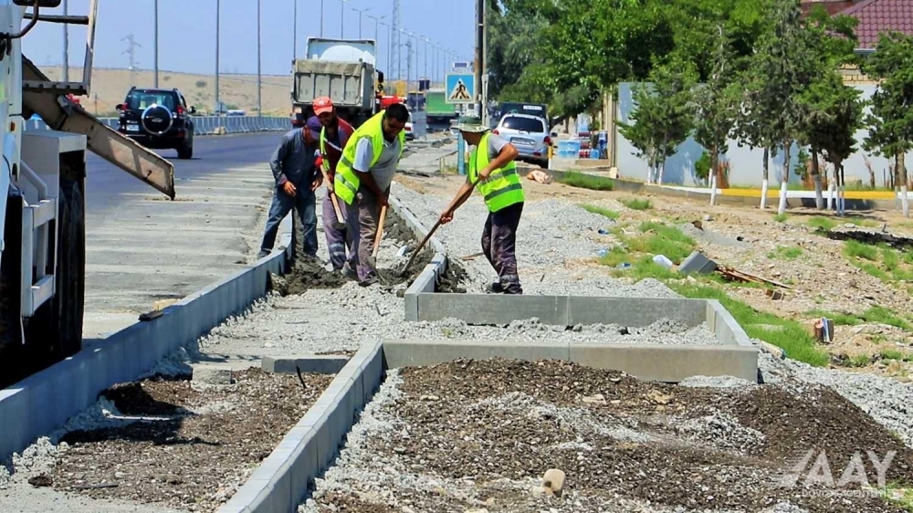 Görülən işlər çərçivəsində marşrut boyu mövcud örtüyün sökülməsi, torpaq yatağının təbii relyef səviyyəsinə qaldırılması və genişləndirilməsi, yeni torpaq yatağının və yol əsasının inşası, geriyə dönmə hissələrin işlənməsi, yolun yaşayış məntəqəsi daxilindən keçən hissəsində piyada səkilərinin və yeni işıqlandırma sisteminin yaradılması, yolayrıcına dəmir-beton maneələrin düzülməsi işləri artıq yekunlaşıb.