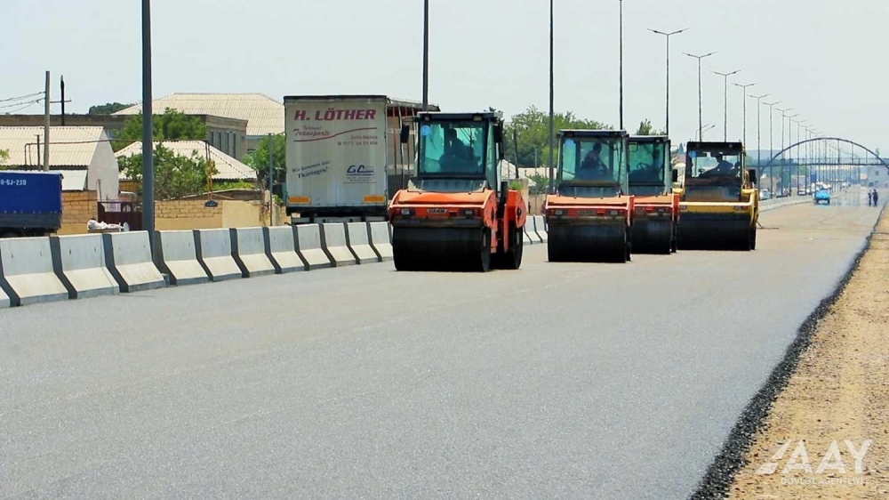 Hazırda layihə boyu son mərhələ üzrə yeni asfalt-beton örtüyünün döşənməsi işləri icra olunur.