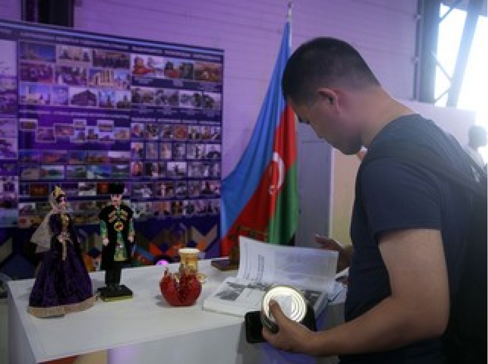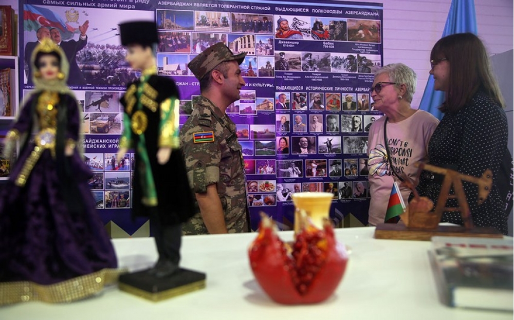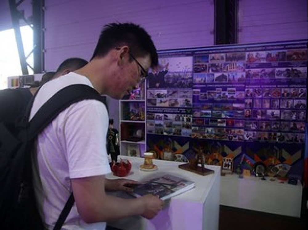 Oyunlarda iştirak edən nümayəndələr və qonaqlar sərginin Azərbaycana aid bölməsində ölkəmizin tarixi, mədəniyyəti, adət-ənənələri, eləcə də məişətinə aid nümayiş olunan ekspozisiyaları maraqla izləyirlər.
