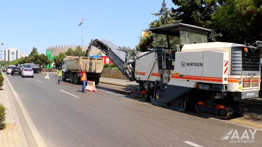 Hazırda ərazidə köhnə asfalt-beton örtüyü frezlənərək kənara daşınır. Ardınca küçəboyu yeni asfalt-beton örtüyünün döşənməsi işləri icra olunacaq.