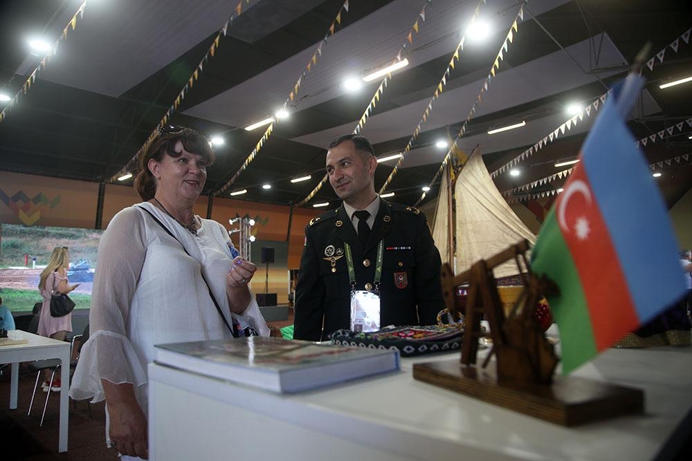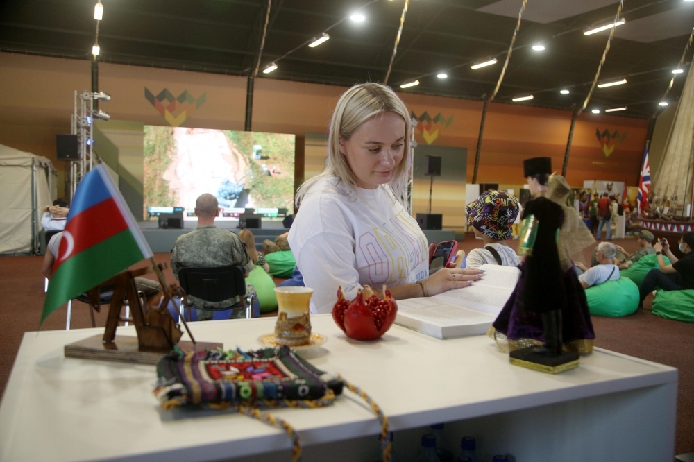 Oyunlarda iştirak edən nümayəndələr və qonaqlar sərginin Azərbaycana aid bölməsində ölkəmizin tarixi, mədəniyyəti, adət-ənənələri, eləcə də məişətinə aid nümayiş olunan ekspozisiyaları maraqla izləyirlər.