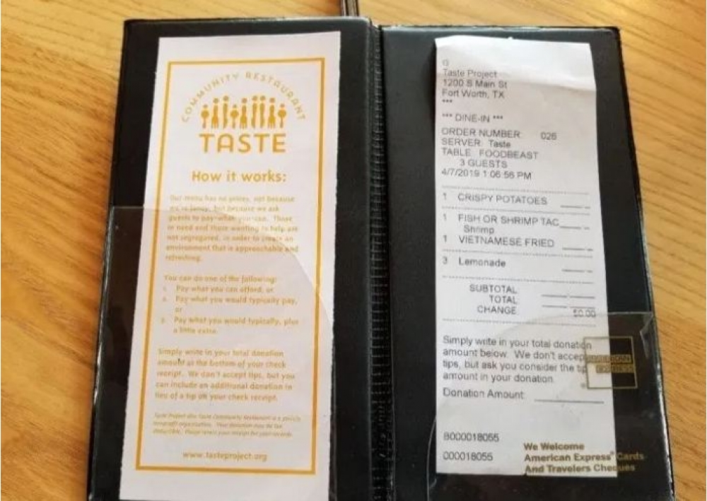 Texasdakı “Taste Community” restoranının sahibləri qiymət məsələsinə olduqca maraqlı yanaşıblar. Daha dəqiq desək, bu restoranda yeməklərin heç bir qiyməti yoxdur.