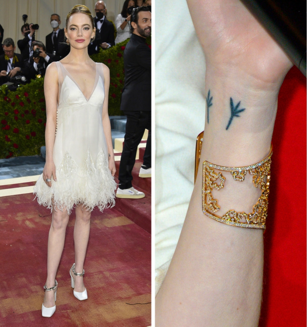 Emma Stounun biləyində olan  quş ayaqlarını anası ilə birlikdə  ciddi bir xəstəliyə düçar olduqdan sonra  etdirdilər. Quş izləri anasının Pol Makkartninin  repertuarından olan  sevimli mahnısı "Blackbird"(qara quş) mahnısına  istinadən edilib. Emma  xahişi ilə hətta Pol Makkartni hətta bu  döymənin dizaynını hazırlayıb.
