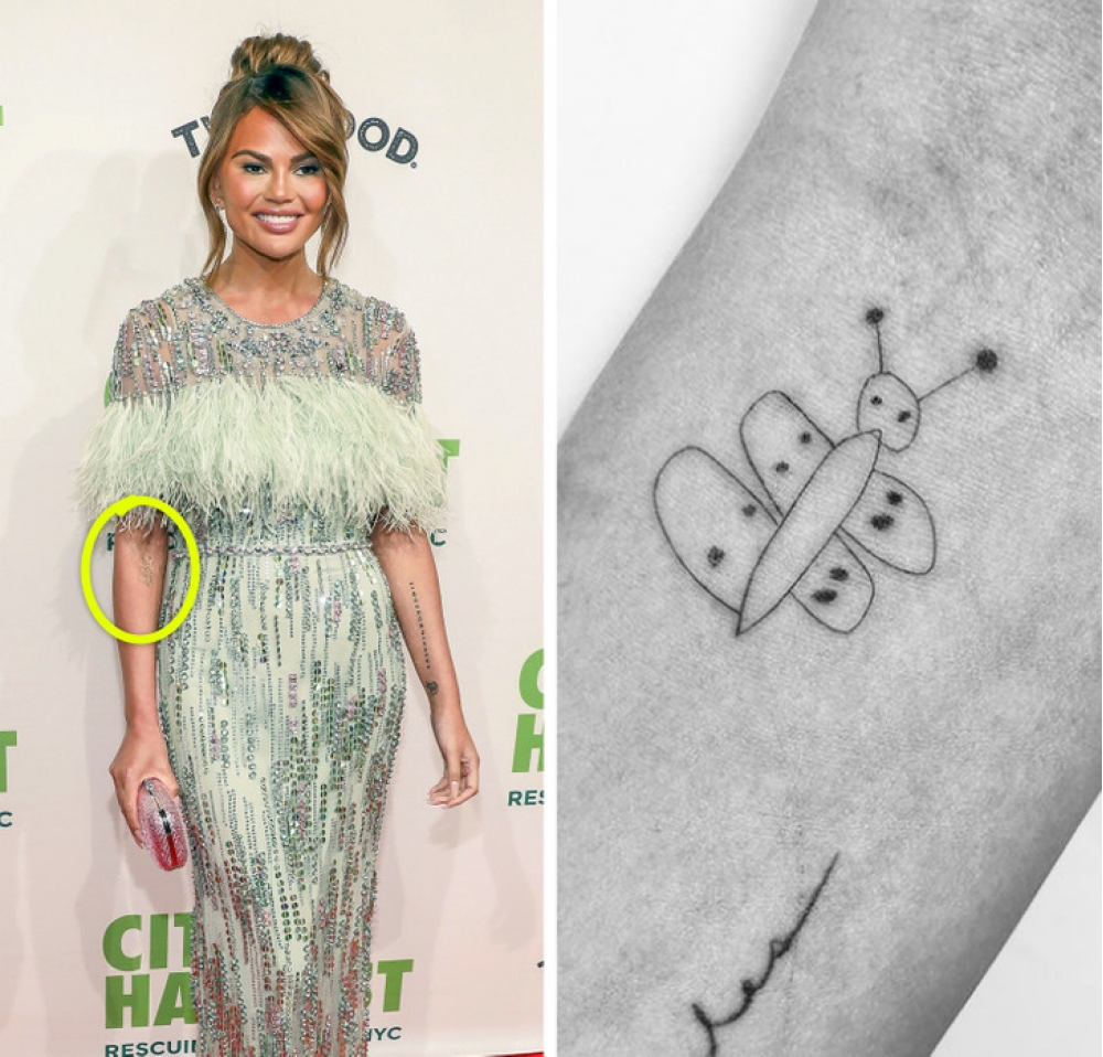 Məşhur televiziya ulduzu  və model Kristi Teygen həm də xoşbəxt anadır.  Bir dəfə onun 5 yaşlı qızı Luna qələmlə Kristinin əlinə kəpənək çəkdi. Teygen uşağın yaradıcılığının ölümsüzləşdirilməsinə ehtiyac olduğuna qərar verdi və buna görə döymə etdi. Ulduz bu  döymənin   bir az səliqəsiz olduğunu etiraf etsə də, bu döyməni özünə doğma bilir.