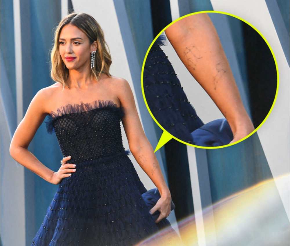 Jessica Albanın əlində bir neçə döymələr var.  Bir neçə il əvvəl Jessicanın etdirdiyi bu 3 minimalist döymələr onun uşaqlarının bürclərinə aiddir. Aktrisa övladlarının bürclərini əlinə  vurdurmaq üçün məşhur tatu ustası Dr.Vuya müraciət edib.