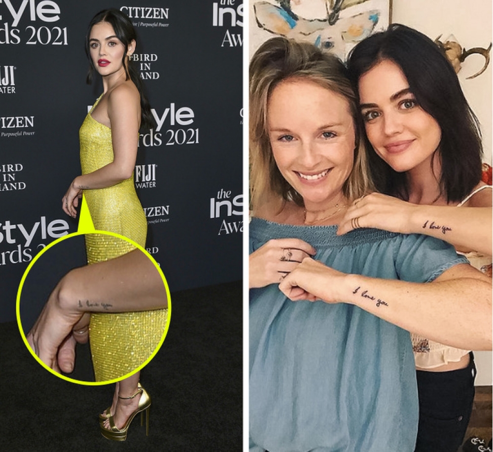 Lüsi Heylin qolunun üstündə olan  “ İ love you” yazısını bacısı ilə birgə etdirib. “Səni sevirəm” mənasını verən bu yazı tatu ustası tərəfindən qızların nənəsinin əl yazısından  köçürülüb.  Sosial mediaya  açıqlama  verən aktrisa vurğulayıb ki, heç bir döymə  bacı ilə arasında olan bağlantını ifadə edə bilməz.