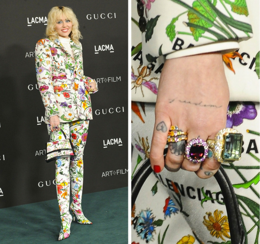 Mayli Sayrusun  əlinin arxasında “azadlıq” yazısı var. Beləliklə, müğənni kolleksiyasına daha bir döymə əlavə edərək, bədənində çəkdirdiyi rəsmlərin ümumi sayını 60-a çatdırıb. Lakin məhz bu döymə Mayli üçün xüsusi bir məna daşıyır. Sayrus "azadlıq" sözünü keçmiş əri Liam Hemsvortdan ayrıldıqdan bir neçə ay sonra vurdurub.