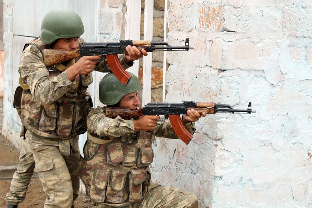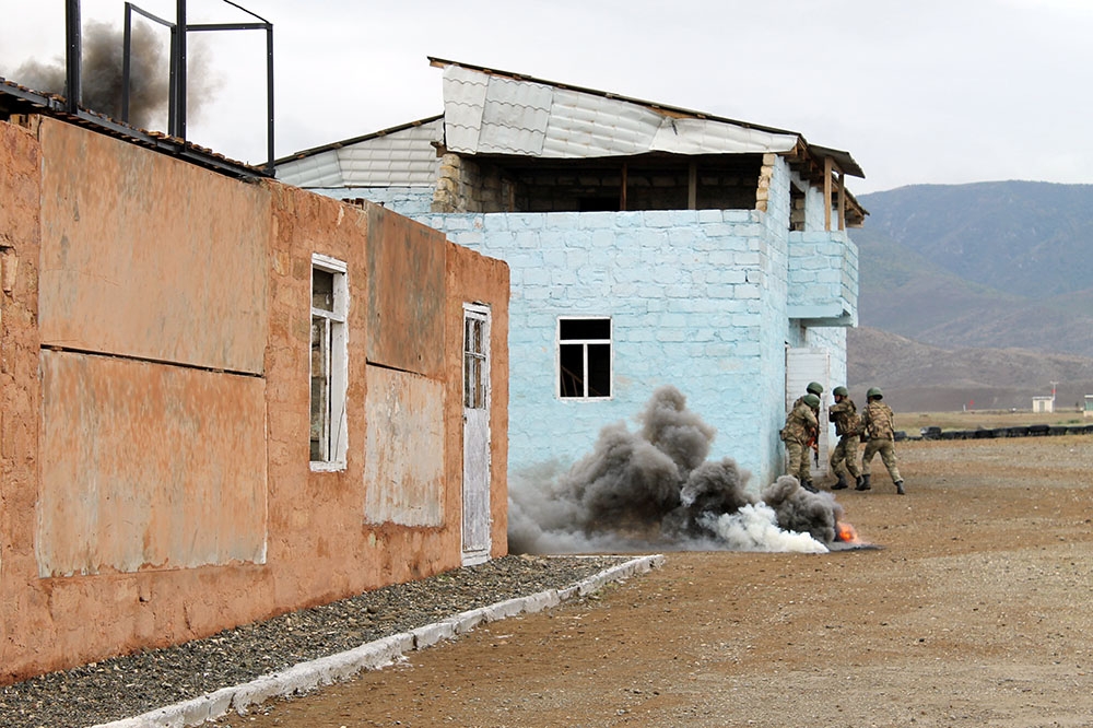 Daha sonra yaşayış məntəqələrində döyüş və məntəqələrin şərti düşməndən təmizlənməsi tapşırığının icrası üzrə təlim epizodları izlənilib.