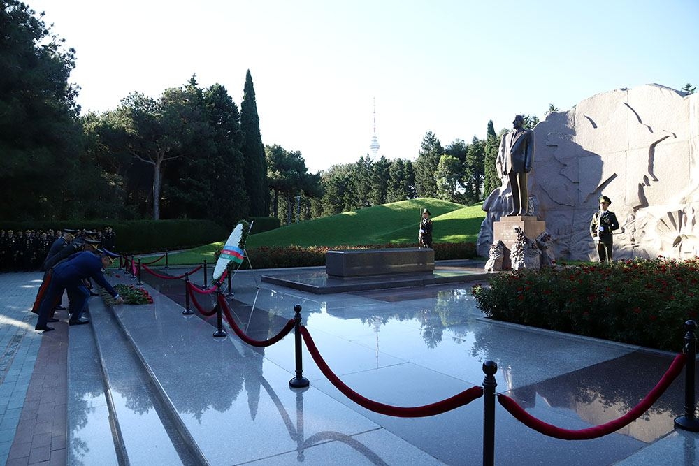Müdafiə Nazirliyindən "İki sahil"ə verilən məlumata görə, əvvəlcə xalqımızın ümummilli lideri Heydər Əliyevin abidəsi önünə gül dəstələri qoyularaq xatirəsi hörmət və ehtiramla yad edilib.