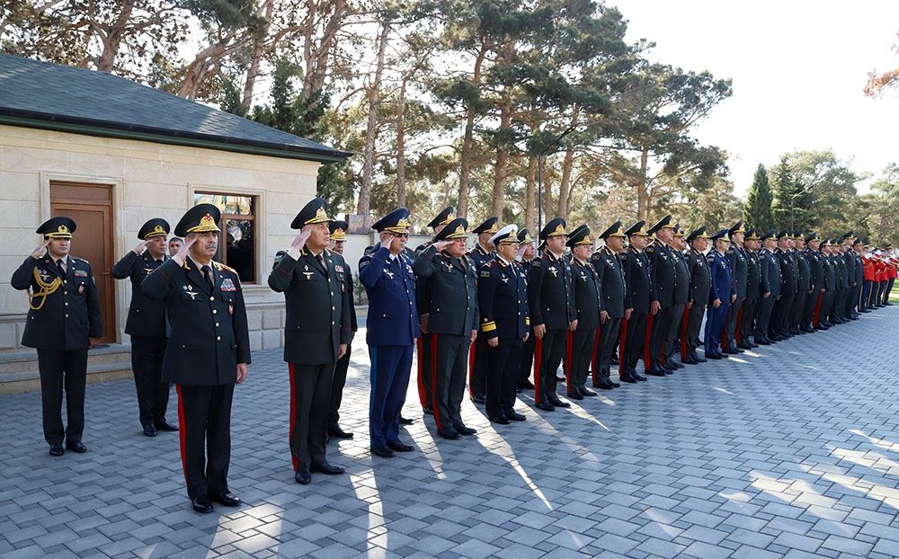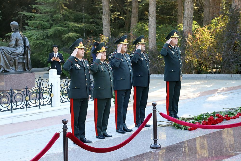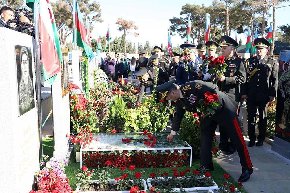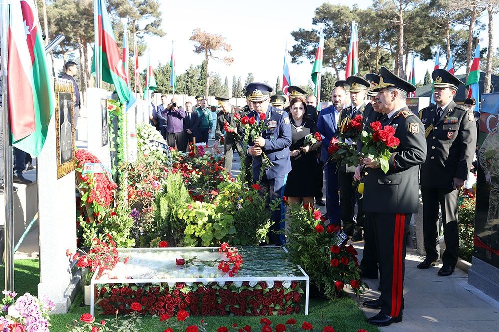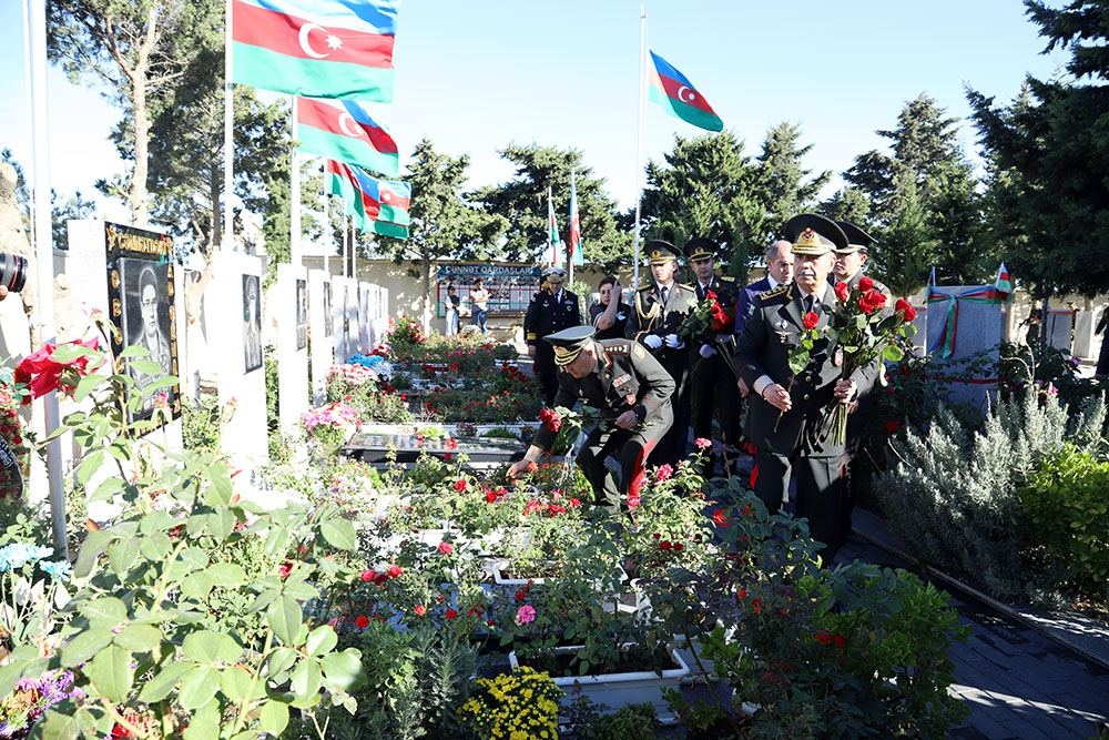 Sonra Müdafiə Nazirliyinin rəhbərliyi İkinci Şəhidlər xiyabanını ziyarət edib.
