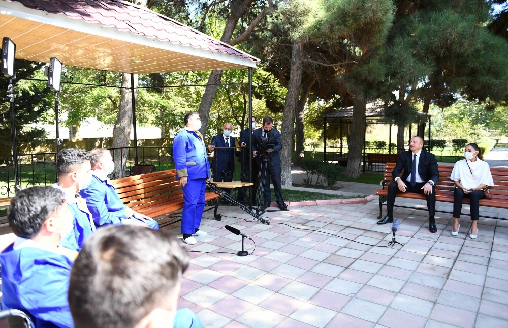 -Allah şəfa versin. Əziz uşaqlar, siz Vətən uğrunda gedən döyüşlərdə müxtəlif xəsarətlər almısınız, yaralanmısınız. Həkimlər sizə yaxşı baxırlar. Əminəm, həkimlər əllərindən gələni edəcəklər ki, siz tezliklə sağalıb normal həyata qayıdasınız.