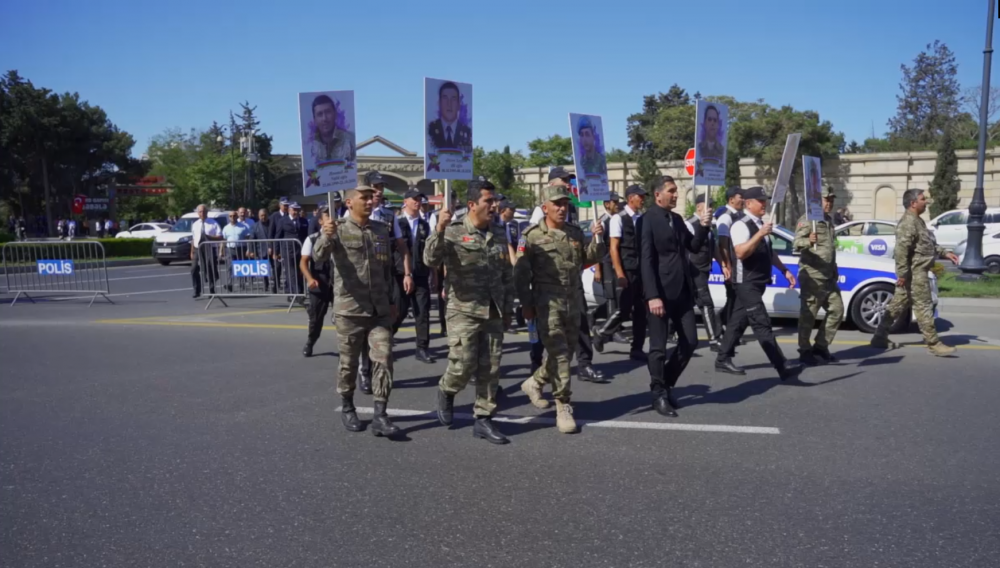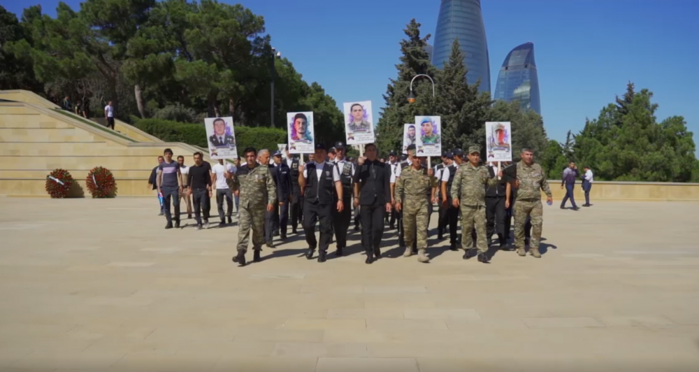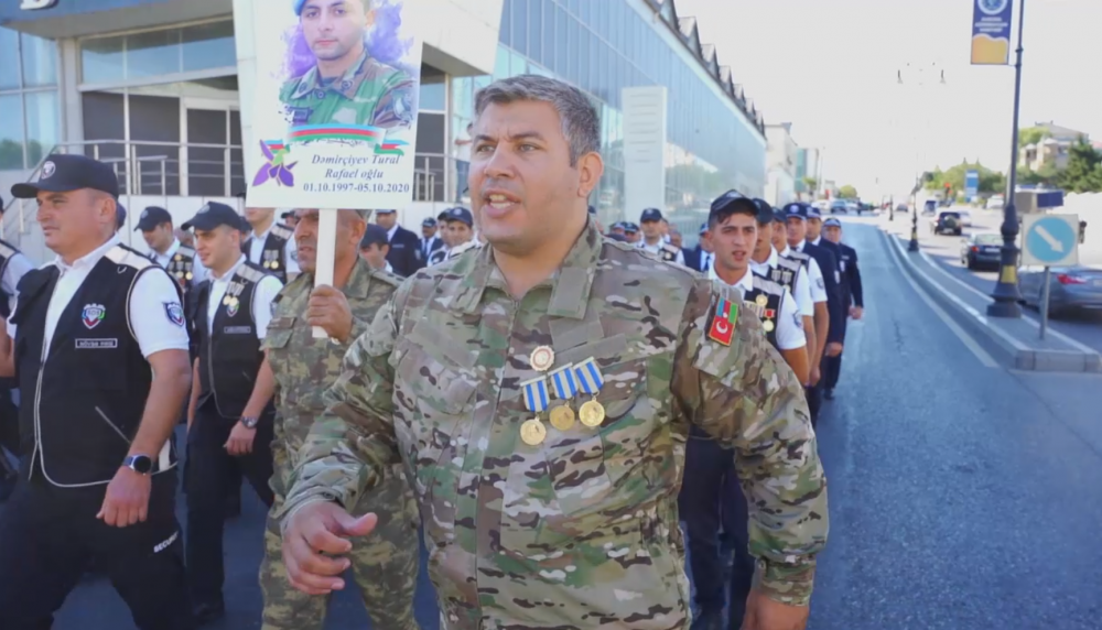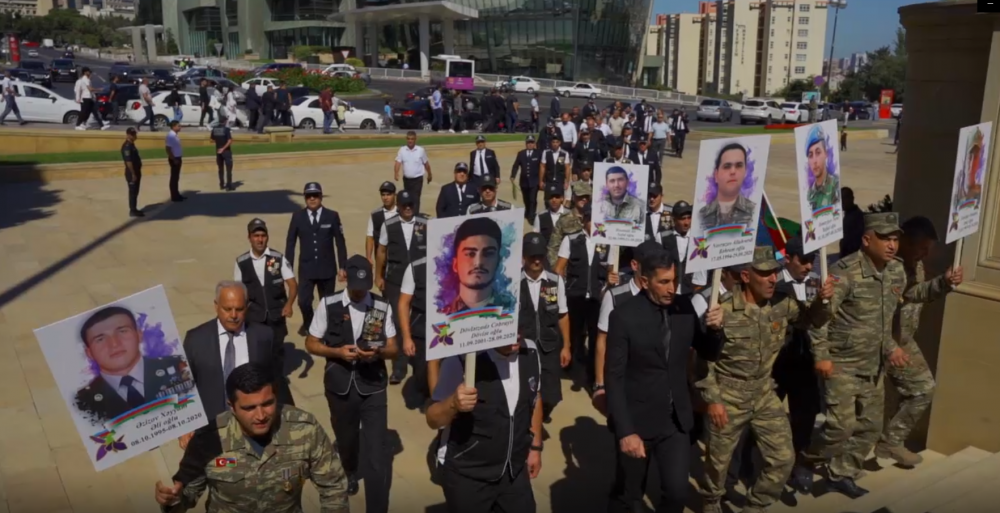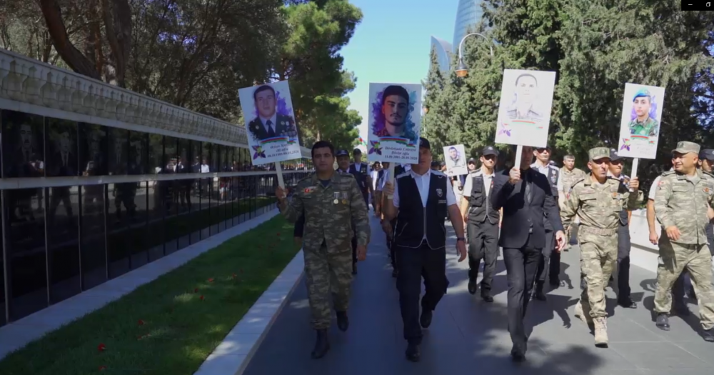 SOCAR-ın mühafizə xidmətini həyata keçirən SOS Məhdud Məsuliyyətli Cəmiyyətinin əməkdaşları 27 sentyabr - Anım Günündə şəhidlərin əziz xatirəsinə dərin hörmət əlaməti olaraq yürüş keçiriblər.
