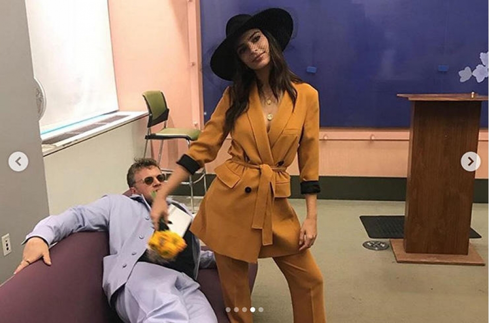 Heç vaxt ağ gəlinlikdə ərə getmək istəmədiyini deyən model toyu üçün "Zara"dan xardal rəngində kostyum seçmişdi.