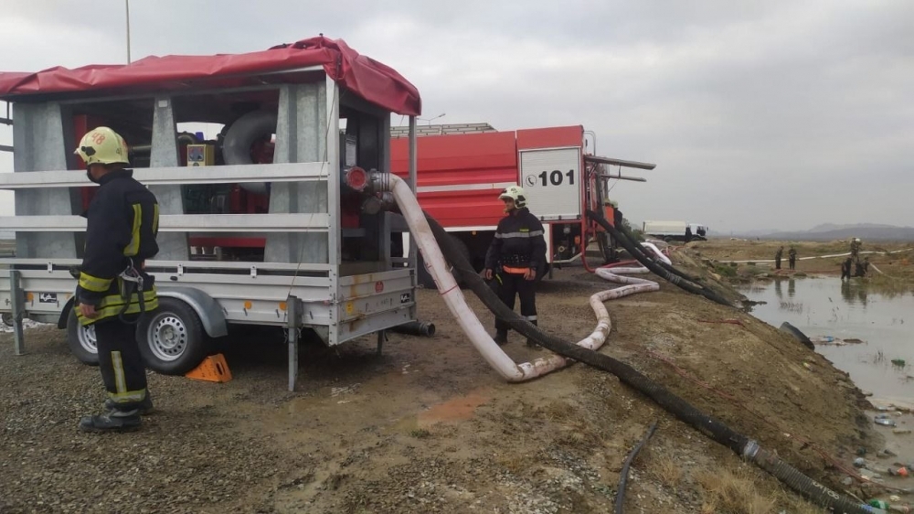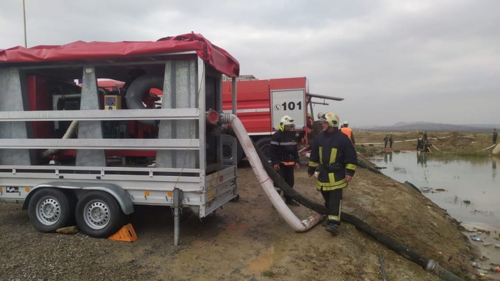 Ümumilikdə FHN-dən 12 motopompa, 9 texnika və 57 nəfər şəxsi heyət suçəkmə işlərinə cəlb olunub.
