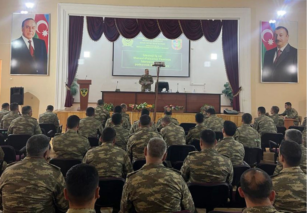 Müdafiə naziri general-polkovnik Zakir Həsənovun tapşırığına əsasən, Şəxsi Heyət Baş İdarəsinin İdeoloji İş və Mənəvi-Psixoloji Təminat İdarəsinin zabitlərinin iştirakı ilə hərbi hissələrdə şəxsi heyətin mənəvi-psixoloji vəziyyətinin və sosial-məişət şəraitinin öyrənilməsində, hüquq qaydalarının və hərbi intizamın möhkəmləndirilməsində komandirlərə köməklik göstərilməsinə dair tədbirlər keçirilib.