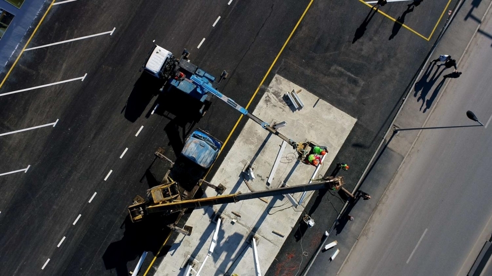 Azərbaycan Avtomobil Yolları Dövlət Agentliyi Xocasən-Lökbatan yolundakı Xocəsən elektrik stansiyasının qarşısında yeni yerüstü piyada keçidi tikir.