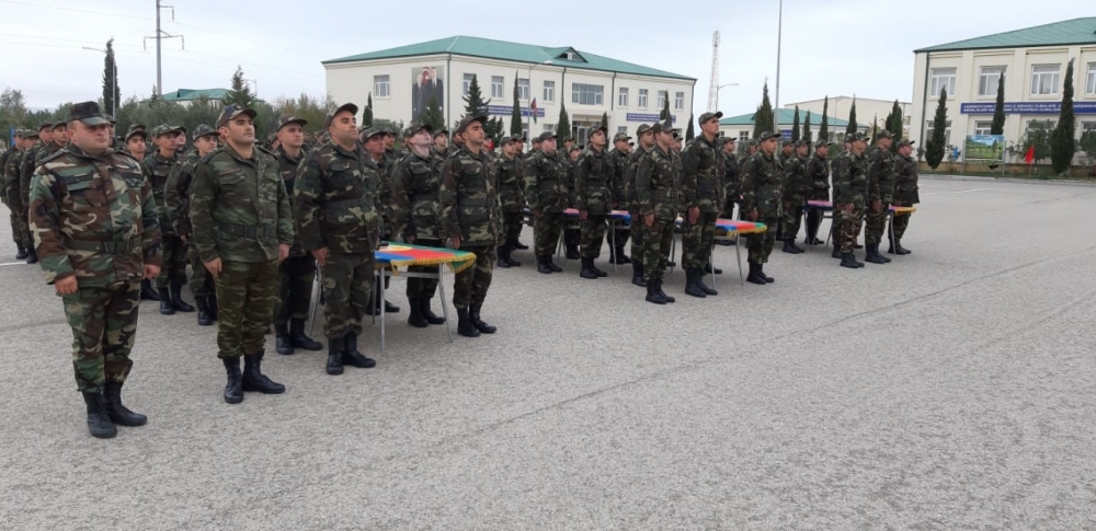 Hərbi andı qəbul edən gənc əsgərlər ölkəmizin suverenliyini, ərazi bütövlüyünü, müstəqilliyini qanları və canları bahasına qoruyacaqlarına, Vətənimizə, xalqımıza layiqli əsgər olacaqlarına and içiblər.
