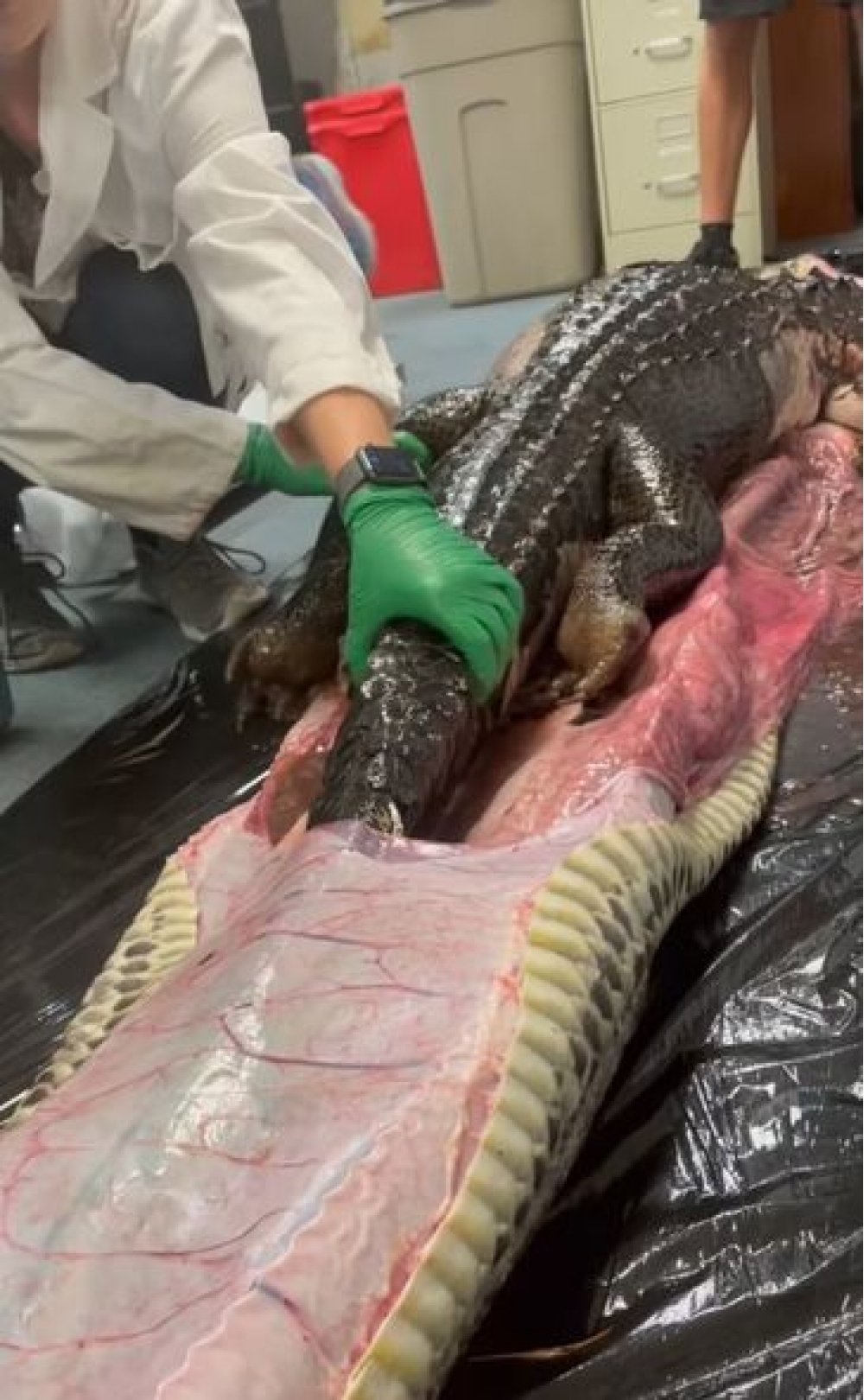 Florida ştatından (ABŞ) olan model və alim 26 yaşlı Rozi Mur öz laboratoriyasında nəhəng pitonunun mədəsindən bir metr yarımlıq alliqator çıxarıb. Bu işdə Mura bir qrup elm adamı kömək edib.