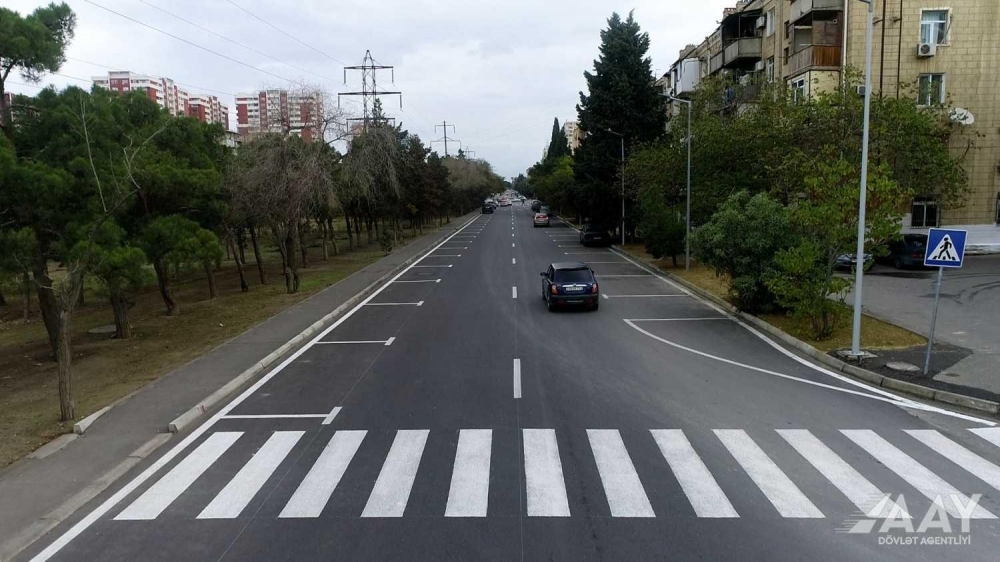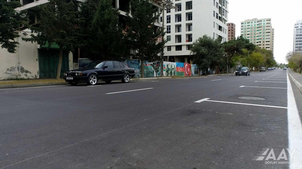 Bu zaman 10 313 kvadratmetr sahəyə asfalt örtüyü döşənib, piyada səkiləri bərpa olunaraq 2 350 kvadratmetr sahəsi asfaltlanıb, əraziyə 2 312 p/m yeni səki daşları düzülüb.