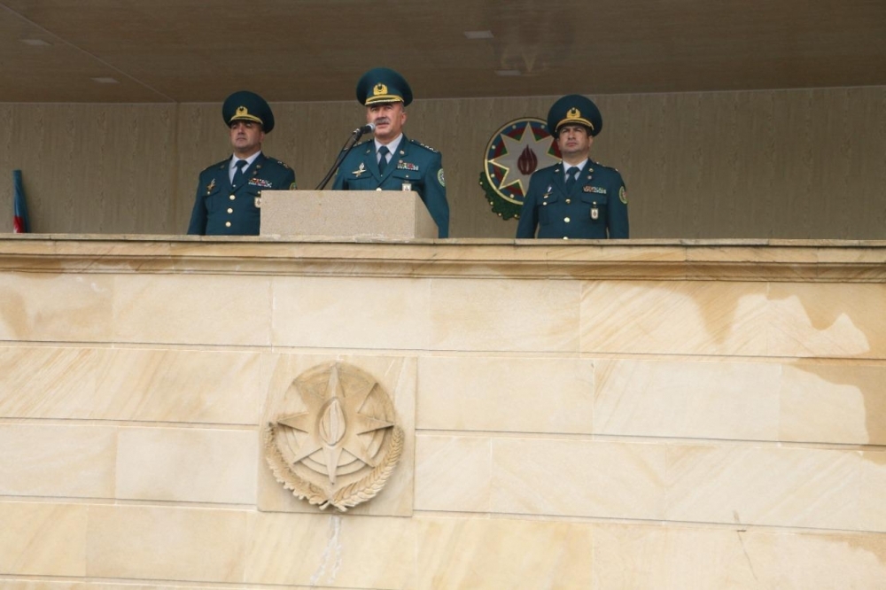 Gənc əsgərlər təntənəli şəkildə hərbi anda gətirildikdən sonra DSX-nin rəisi general-polkovnik Elçin Quliyevin təbriki şəxsi heyətə çatdırılıb.