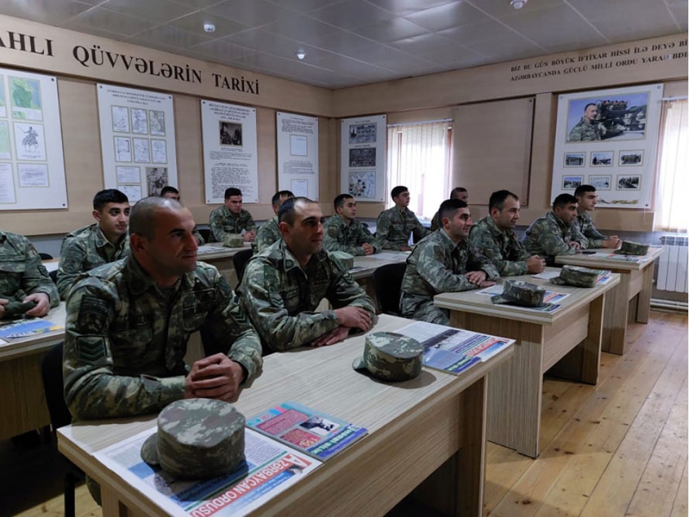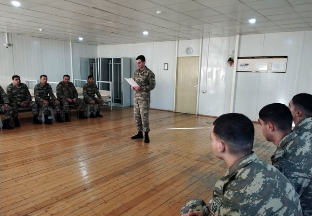 Müdafiə naziri general-polkovnik Zakir Həsənovun təsdiq etdiyi 2022-ci ilin hazırlıq planına uyğun olaraq hərbi qulluqçuların maarifləndirilməsi üzrə tədbirlər davam etdirilir.