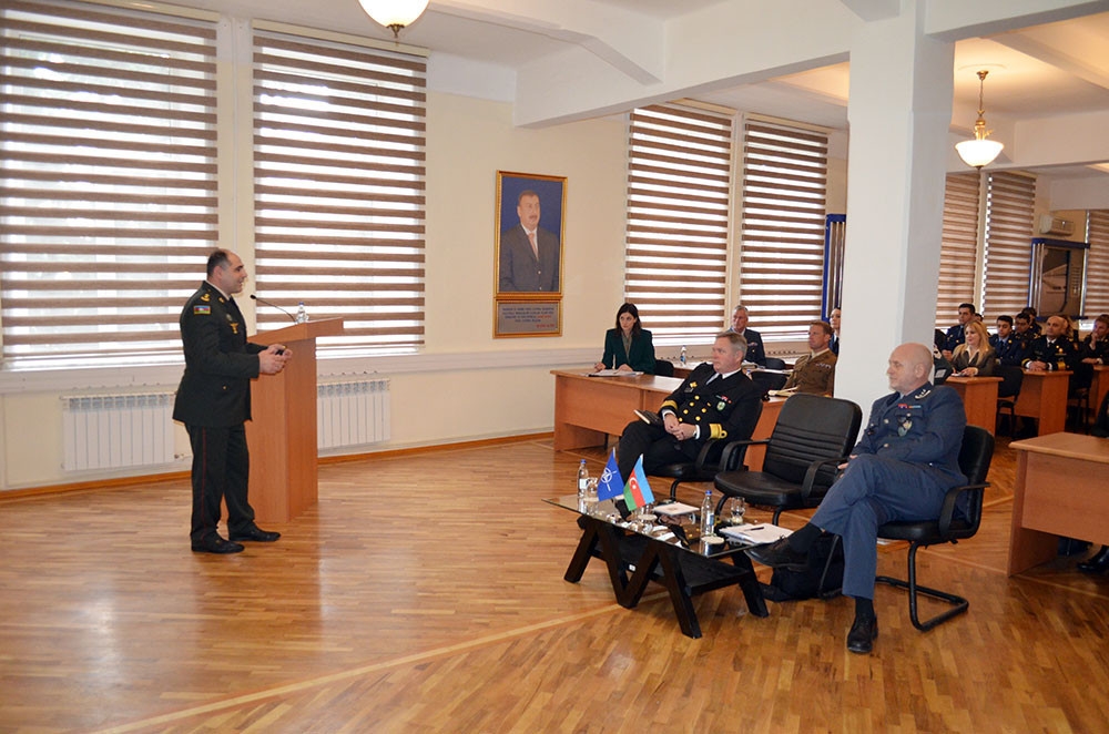 Qeyd olunub ki, Milli Müdafiə Universitetinin rektoru general-leytenant Heydər Piriyev qonaqları salamlayaraq, NATO ilə əməkdaşlıq çərçivəsində təşkil olunan görüşlərin hər iki tərəf üçün səmərəli olduğunu bildirib. Ölkəmizin NATO ilə mövcud hərbi əməkdaşlığının bundan sonra daha da genişləndirilməsində maraqlı olduğu qeyd edilib.