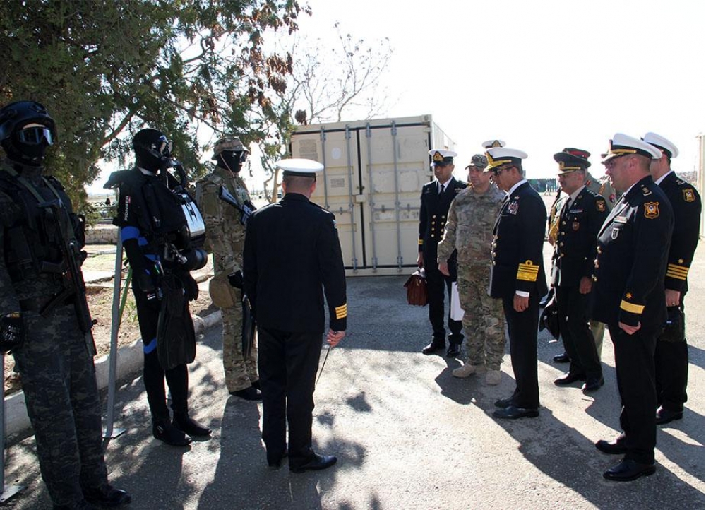 Daha sonra nümayəndə heyəti HDQ-nin N hərbi hissəsini ziyarət edib. Əvvəlcə hərbi hissənin ərazisində şəhidlərin xatirəsinə ucaldılan abidə önünə gül dəstələri düzülərək ehtiram nümayiş etdirilib. Qonaqlara hərbi hissənin fəaliyyəti, şəxsi heyətin hazırlıq prosesi və xidmət şəraiti haqqında ətraflı məlumat verilib. Hərbi hissə ilə tanışlıqdan sonra dəniz piyadalarının istifadəsində olan silah və texniki vasitələrə baxış keçirilib. Sonda hərbi hissənin ərazisindəki təlim poliqonunda sualtı hücum və sualtı müdafiə bölmələrinin dalğıclarının nümunəvi çıxışları nümayiş etdirilib.
