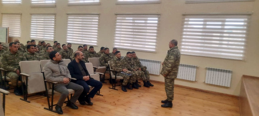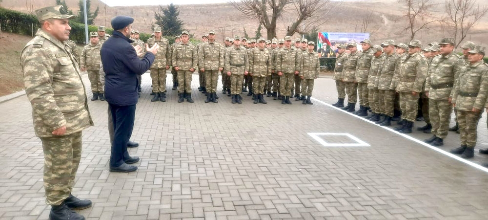 Həmçinin gənclərin hərbi vətənpərvərlik ruhunda tərbiyəsi, onların zərərli vərdişlərdən qorunmasında milli-mənəvi dəyərlərimizin rolu və bu istiqamətdə həyata keçirilən maarifləndirmə tədbirlərinin əhəmiyyəti şəxsi heyətin diqqətinə çatdırılıb.