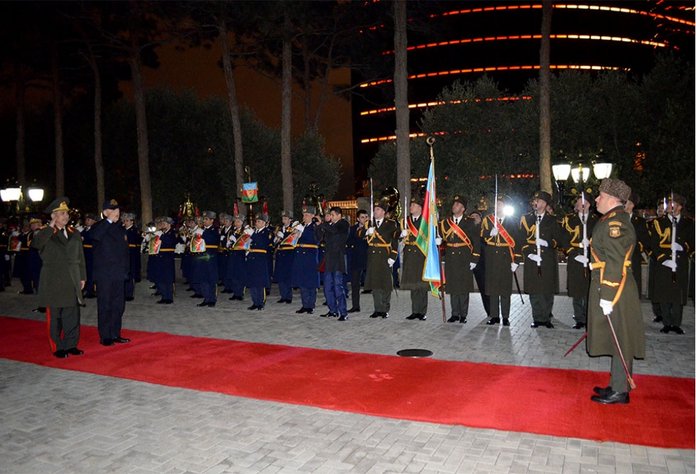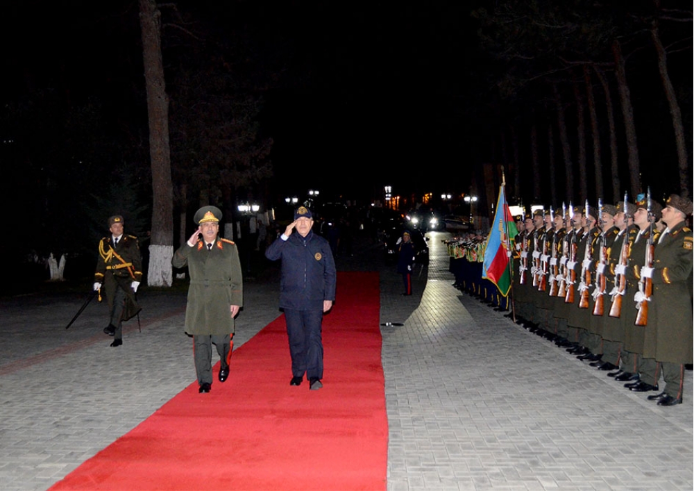 “İki sahil” xəbər verir ki, Müdafiə Nazirliyində təntənəli qarşılama mərasimi olub, hər iki ölkənin müdafiə nazirləri fəxri qarovulun önündən keçib. Azərbaycan və qardaş Türkiyənin dövlət himnləri səsləndirilib.