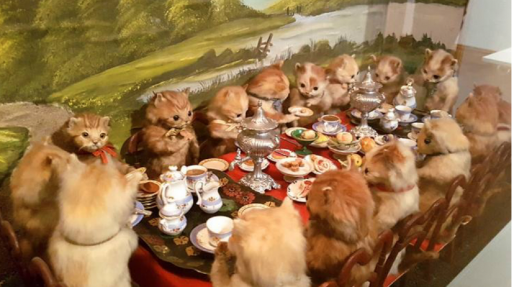 MONA İncəsənət Muzeyində bir qəribə eksponat var: Uolter Potter tərəfindən son Viktoriya dövrünə aid pişiklər üçün çay süfrəsi.