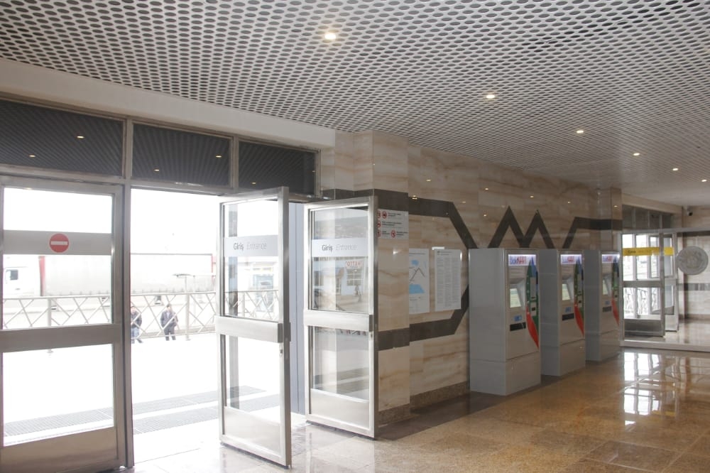 Bəxtiyar Məmmədov bildirdi ki, stansiyanın giriş sahəsində vestibül yerləşir: “Burada sərnişin avtomatikası, o cümlədən avtomat nəzarət-buraxılış məntəqəsi mövcuddur. Vestibüldən sərnişin platformasına qədər 59 metr uzunluğunda keçid dəhlizi inşa olunub. Sərnişinlərin platforma səviyyəsinə qalxması üçün Almaniya istehsalı olan iki müasir eskalator və pilləkənlər quraşdırılıb. Eskalatorun qalxma hündürlüyü 4.8 metr, lentinin uzunluğu 12 metrdir. Qapalı və açıq gözləmə zalları, xidməti personalın otaqları platforma səviyyəsindədir. Xüsusi çətir stansiya yolunu, platforma və platformaaltı infrastrukturu açıq hava şəraitinin təsirlərindən qoruyur. Stansiya vestibülü, keçid dəhlizi və platformanın döşəmə və divarları daha uzunömürlü qranit və keramoqranitlə üzlənib. Döşəməyə İtaliya və Ukrayna istehsalı olan qranit, divarlara keramoqranit vurulub. Bu da stansiyanın estetik görünüşünə zənginlik gətirir. İkimərtəbəli binanın vestibülə bitişik zonası və ikinci mərtəbəsindəki otaqlar xidməti personal və texniki heyət üçün nəzərdə tutulub.”