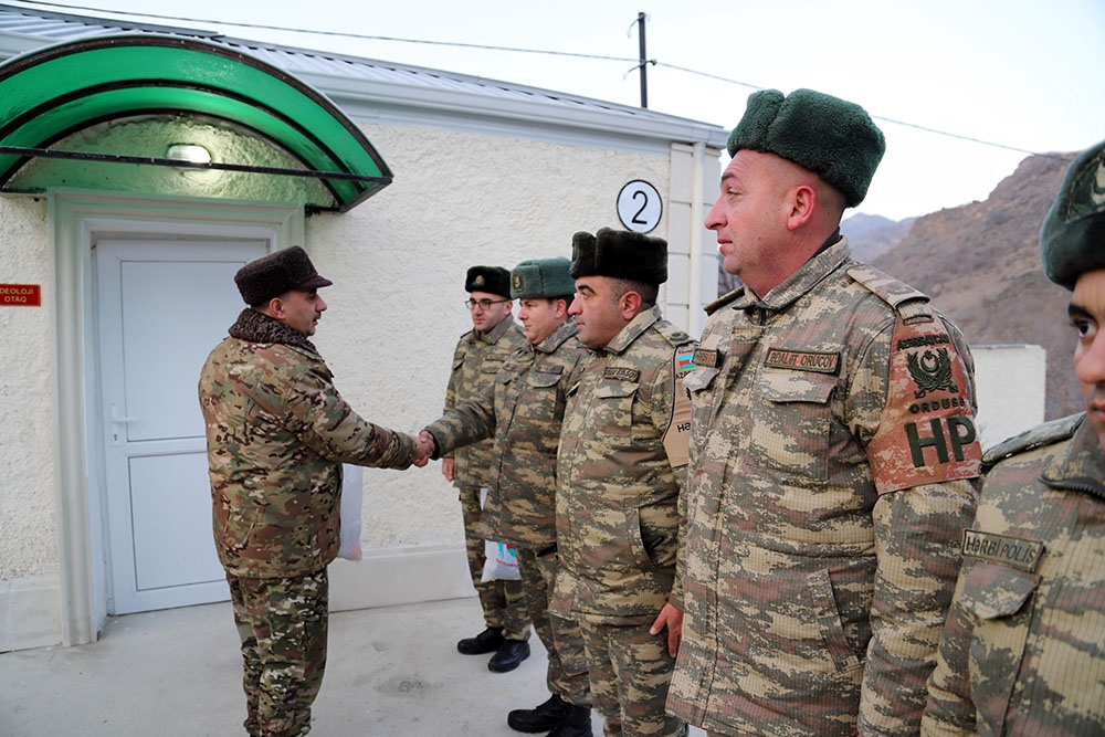 Sonra şəxsi heyətlə görüşən general-leytenant N.Osmanov onların qayğıları ilə maraqlanıb, hərbi qulluqçuları qarşıdan gələn Dünya Azərbaycanlılarının Həmrəyliyi Günü və Yeni il münasibətilə general-polkovnik Zakir Həsənovun adından təbrik edərək xidmətlərində uğurlar arzulayıb və bayram hədiyyələri təqdim edib.