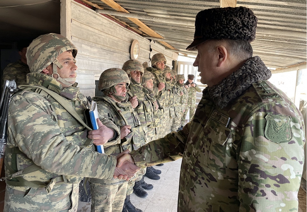 Sonra döyüş mövqelərində növbətçilik aparan heyətlə görüşən general-polkovnik K.Vəliyev onun döyüş və mənəvi-psixoloji hazırlığını yüksək qiymətləndirib.