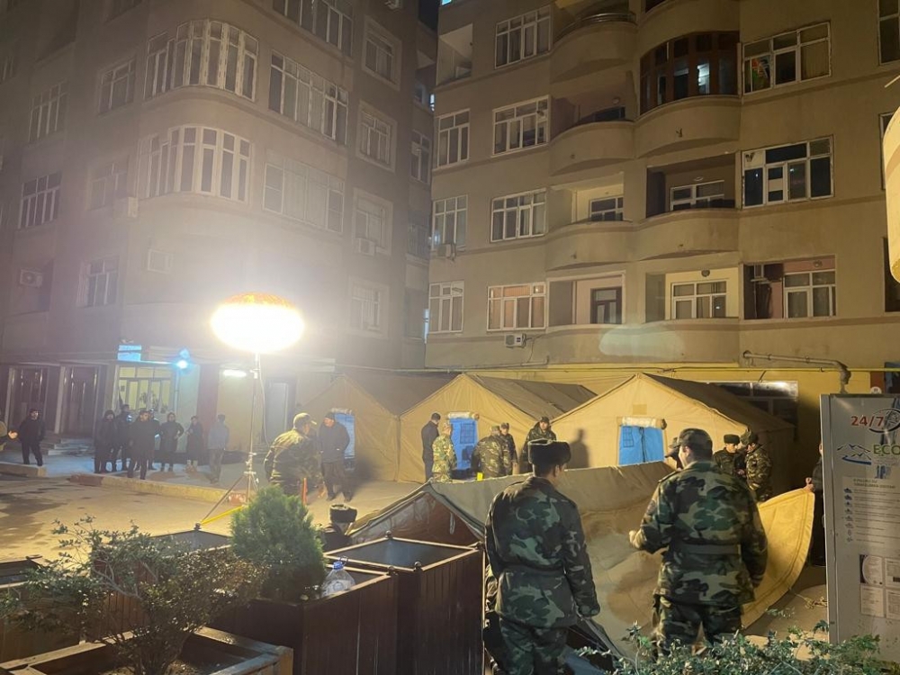 Bakı şəhəri, Binəqədi rayonu, Cavadxan küçəsində yerləşən çoxmərtəbəli yaşayış binasında baş vermiş partlayışla əlaqədar binaya qazın verilişinin müvəqqəti dayandırılması səbəbindən bina sakinlərinin gecələməsi üçün Fövqəladə Hallar Nazirliyinin Mülki müdafiə qoşunları tərəfindən ərazidə çadırlar qurulub.