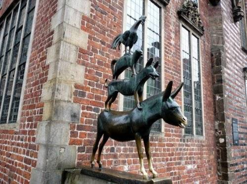 “Bremen musiqiçiləri” Qrim qardaşlarının nağılından 1857-ci ildə Bremendə bələdiyyə binasının qərb hissəsində yerləşdirilən bürünc heykəl qismində ölümsüzləşdirilib. Uzunqulaq, it, pişik və xoruz 1951-ci ildən etibarən orada dururlar. Qeyd edək ki, nağılda bu heyvanlar azad həyat axtararaq öz sahiblərindən qaçırlar.