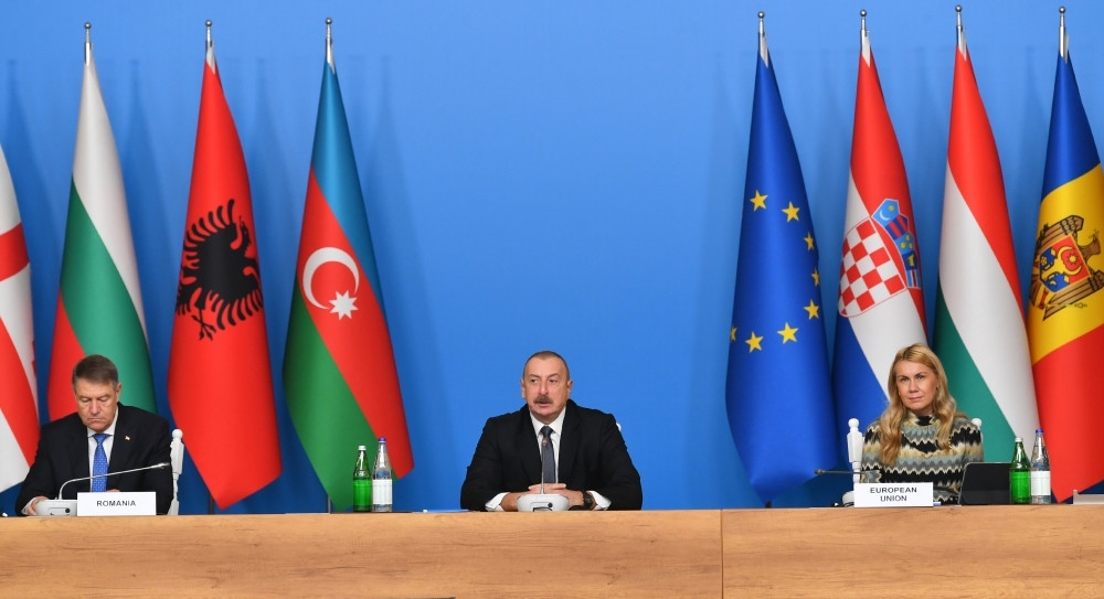 Qazın paylanması ilə əlaqədar yaxşı uğurlarımız var. Biz yaşıl enerji ilə bağlı saziş imzalamışıq. Biz, həmçinin təbii qaz və bərpaolunan enerji imkanları arasında səmərəliliyin artırılmasına əsaslanan qarşılıqlı əlaqə yaratmalı və bunu vahid paket çərçivəsində etməliyik. Bizim güclü siyasi iradəmiz və əlbəttə ki, fəaliyyətimizin uğurlu tarixçəsi var. Bizim müxtəlif formatlarda və müxtəlif ölkələrlə birgə həyata keçirdiyimiz bütün layihələr – istər Bakı-Tbilisi-Ceyhan neft boru kəməri, istər Bakı-Tbilisi-Ərzurum qaz boru kəməri, istərsə də Cənub Qaz Dəhlizi – hamısı uğurlu olmuşdur.