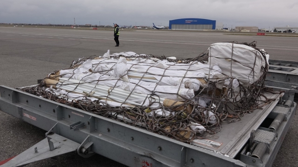 Heydər Əliyev Beynəlxalq Aeroportundan Türkiyənin Adana şəhərinə istiqamət alan təyyarə ilə dağıntılardan ziyan çəkmiş insanların yerləşdirilməsi üçün çadırlar, ədyal və qızdırıcılar, habelə mobil səhra hospitalı üçün 3 ədəd konteyner yola salınıb.